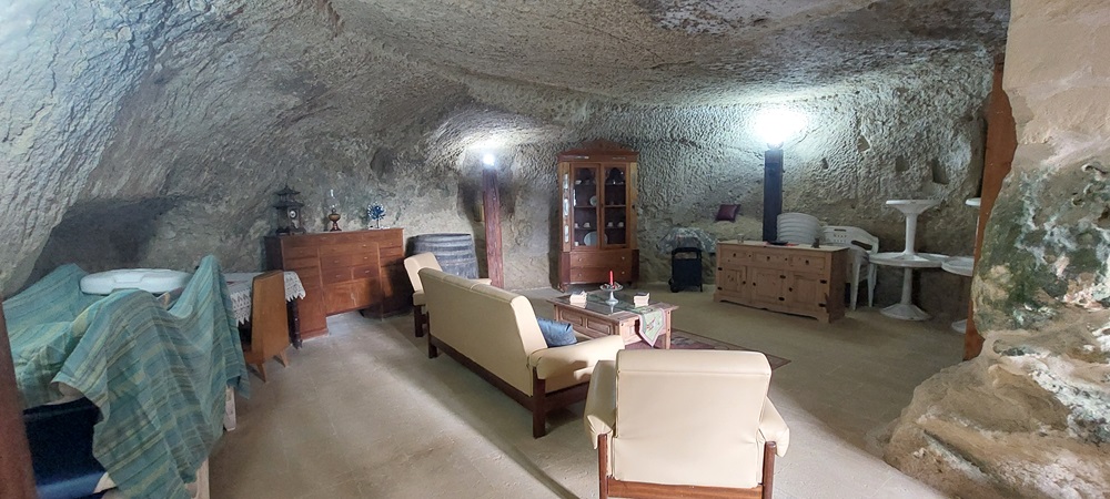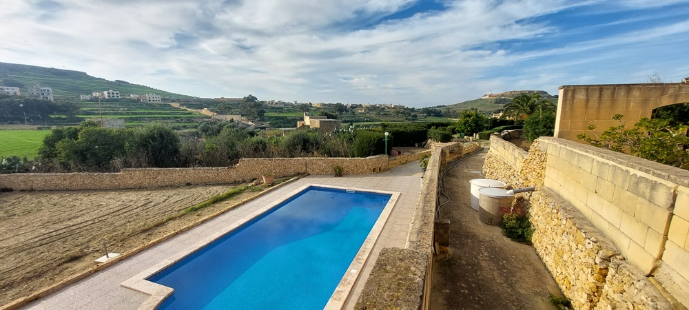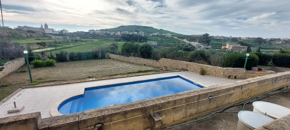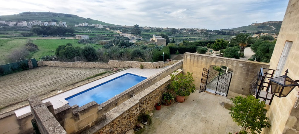 An Outstanding Semi Detached authentic farmhouse set on 3000m2, situated at the far outskirts of this idyllic village, on high grounds enjoying open country views from its south facing landscaped garden. Definitely one of the few remaining farmhouse of this type, Offering a lovely entrance through private drive in leading to a 5-6 car, car port. presently 2 adjacent houses, one offers large original cave as lounge area, separate Dining Kitchen overlooking a massive swimming pool (30ft by 15ft) surrounding by mature garden, 3 bedrooms (all en-suite). The other house offers 3 more bedrooms, and a combined lounge/dining/kitchen leading to same pool. One must visit the property to appreciate the potential to join the two houses as one for a better flow and a more comfortable accommodation. Unique surroundings.