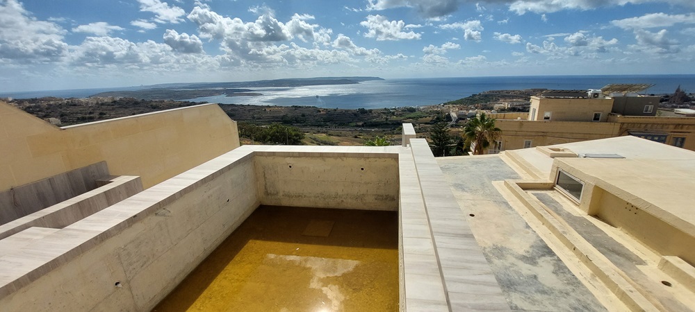 Like no other! A truly amazing (180m2) penthouse located in a much sought after location, enjoying the most stunning views of the channel, Mgarr harbour, Comino, blue lagoon and the open far reaching sea. Forming part of a new classy block offers an entrance hall, combined lounge/dining/kitchen leading to an infinity pool with very spacious surrounding deck area and space for a roof garden, 2 double bedrooms and 2 bathrooms. Overlying airspace included. Optional lock-up a garage. Served with lift. One off.