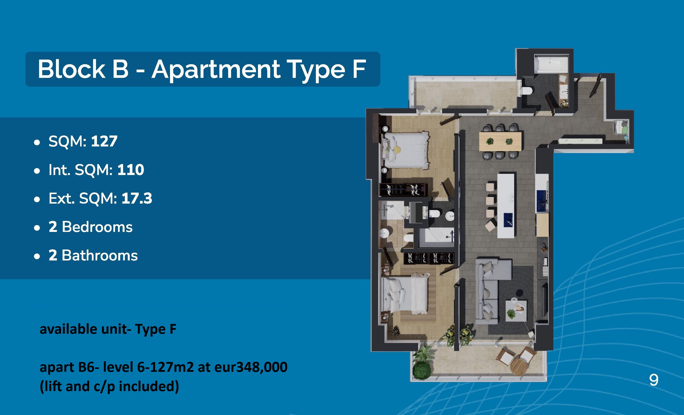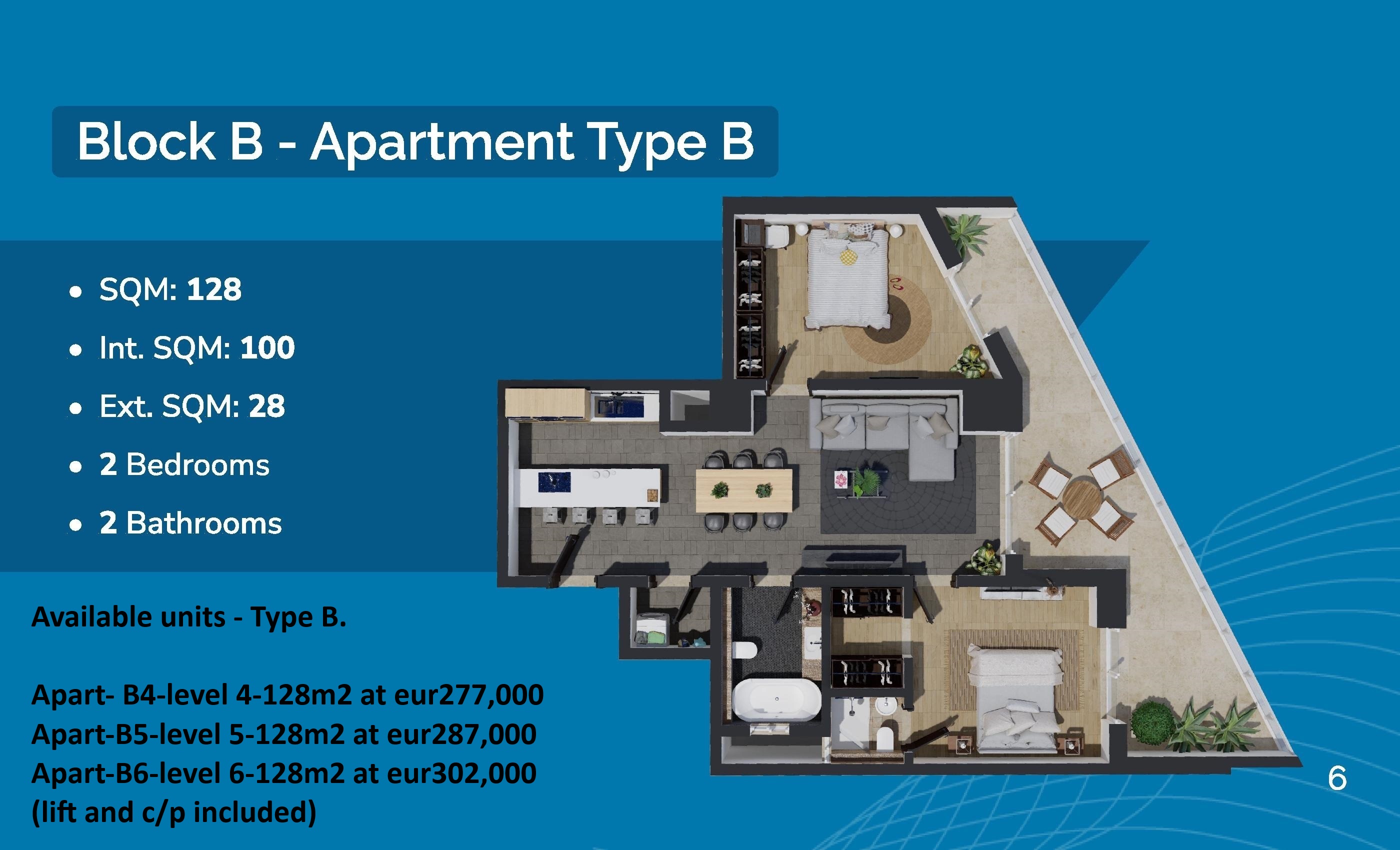 Be the lucky owner of one of the last few available apartments in different layout and different levels, forming part of this already built, state of the art development, located by the sea side few feet away from the picturesque beach. All units are being sold highly finished (except for internal doors, bathrooms and balcony railings). Optional car spaces are also available starting at eur41,000. Lift and common parts included. Contact us for immediate viewing.