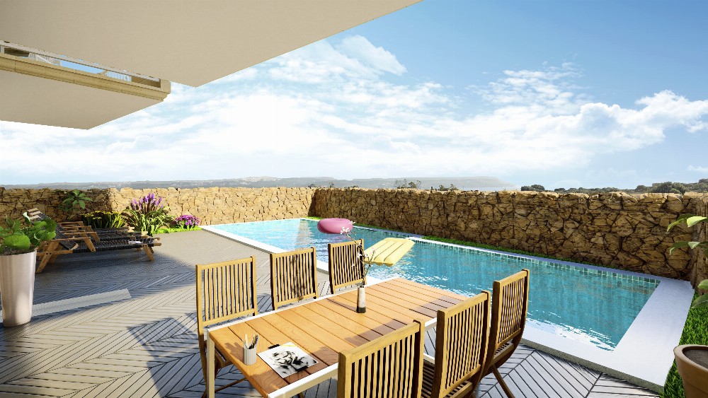 Just launched (oct 2025). A selection of apartments /penthouses with private pools and 190m2 Duplexes with garage, overlooking open stunning views of Comino, Blue lagoon and the surrounding sweeping valley far reaching towards the sea. Still on plan and to be sold completely finished to top luxury standards by a much renowned Developer. Finishing package include air-conditioning, voltaic panels, insulation, water filtration, water heating and a 'zero emission' building package. Prices start form Eur478,000 for a fully finished studio apartment with its own private swimming pool overlooking the open views. An adjacent 2 bed 2 bath apartment, also with private pool is available at eur538,000. optional garages. contact us for info on other available units. Top luxury development.
