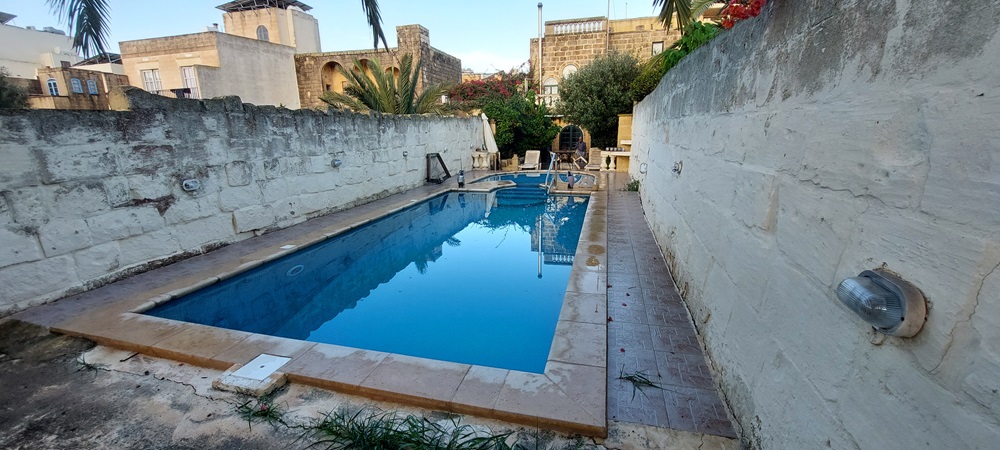 Impeccably maintained authentic house of character located in this idyllic peaceful village enjoying open views of the Gozitan landscape. Offering an entrance onto a vaulted entrance hall, Lounge area leading to a large swimming pool, extra garden and a raised terrace overlooking wonderful views; Separate kitchen and guest bathroom. Internal stairs lead to 3 double bedrooms all en-suite and a spacious sunny terrace also overlooking the open views. Being sold fully air-conditioned and mostly furnished. Complimenting this property is a street level garage. Full of charm.