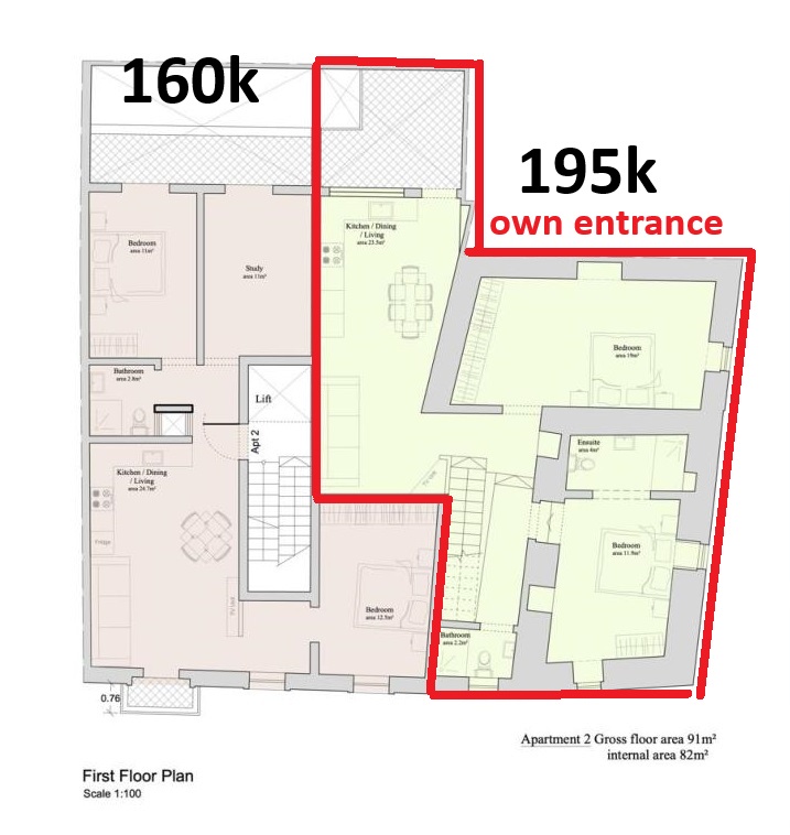 A very appealing partially authentic corner Block of apartments and penthouses, located in peaceful residential area. Pre-construction prices start from eur160,000 for a 3bed (91m2), 1st floor apartment. Extra Eur5k for lift and common parts. A hard to come by, impressive 124m2 authentic elevated maisonette is available at eur195, 000. Very bright and airy corner apartments. Very well priced to sell.