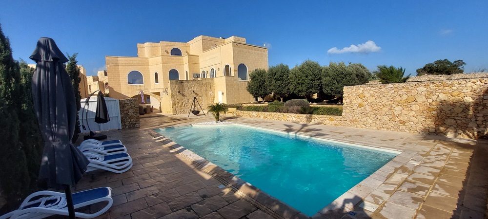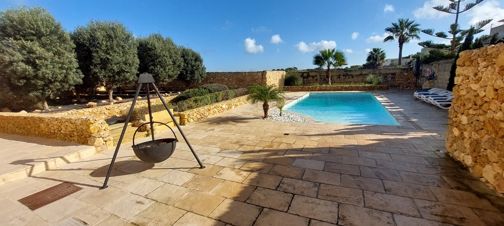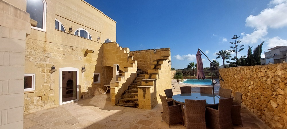 Top Luxury. Not a penny has been spared in converting and finishing this stupendous, semi-detached Authentic farmhouse, located at the village outskirts, in a much sought after area (Birbuba) enjoying open stunning views of the Gozitan panorama. Set on 770m2 this spacious property offers and entrance hall, impressive mill-room (lounge area) and separate Kitchen/breakfast area leading to a massive swimming pool with surrounding deck/area and an olive grove/garden. Internal and external stairs lead to 5 bedrooms (3 en-suite) and 2 extra bathrooms. One must visit the property to appreciate the location, the space and the views enjoyed. Includes a well and a cellar. a communal Car port compliments this property. Being sold furnished and air-conditioned throughout. Rare Find.