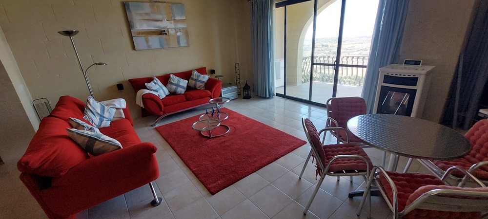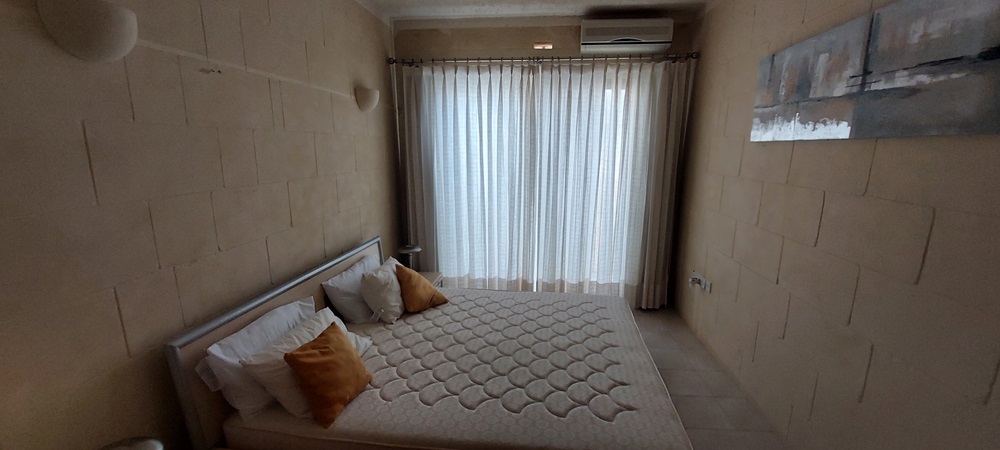 An exceptional apartment located in a sought after area, on the cliff's edge enjoying staggering views of the sea and the far reaching sweeping valley. This very spacious property offers a combined lounge/dining leading to the terrace, fully equipped kitchen including a dishwasher, 3 double bedrooms (main en-suite) and bathroom. includes a washroom and a storage room. complimenting this property is the use of large communal pool, a pellet burning stove and is air-conditioned throughout. Includes a carport in a lock-up garage. Stunning sunset views.